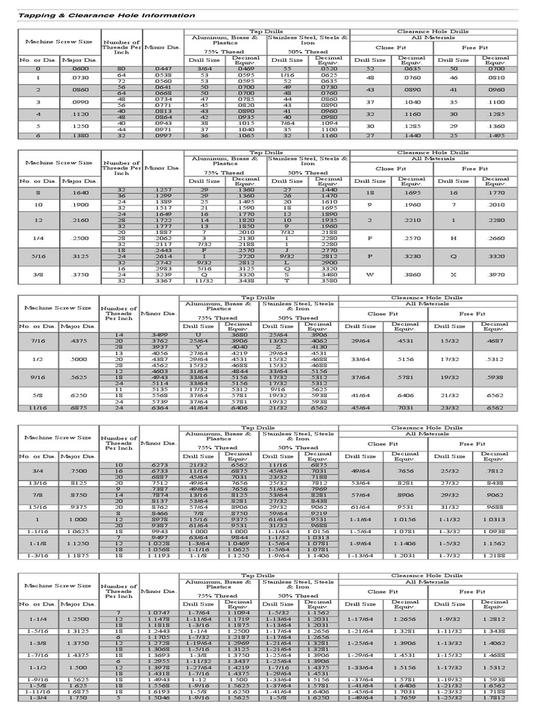 Tapping Clearance Hole Table PDF Drill Screw