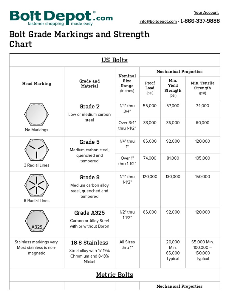 Bolt Depot Bolt Grade Markings and Strength Chart Ultimate Tensile