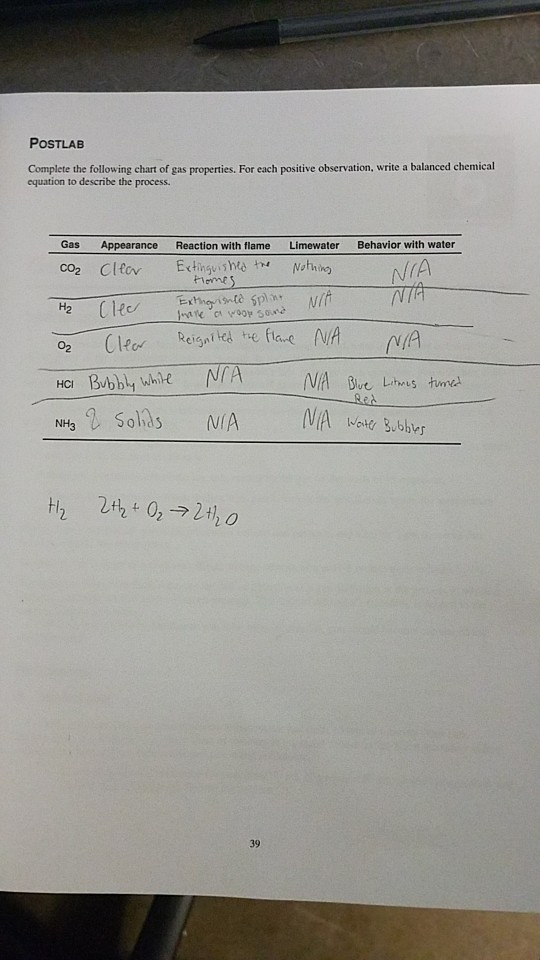 Solved Alt Ctrl POSTLAB Complete the following chart of gas