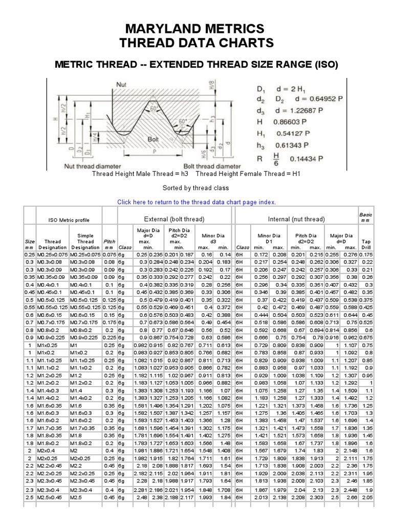 Printable Metric Thread Chart Printable Word Searches