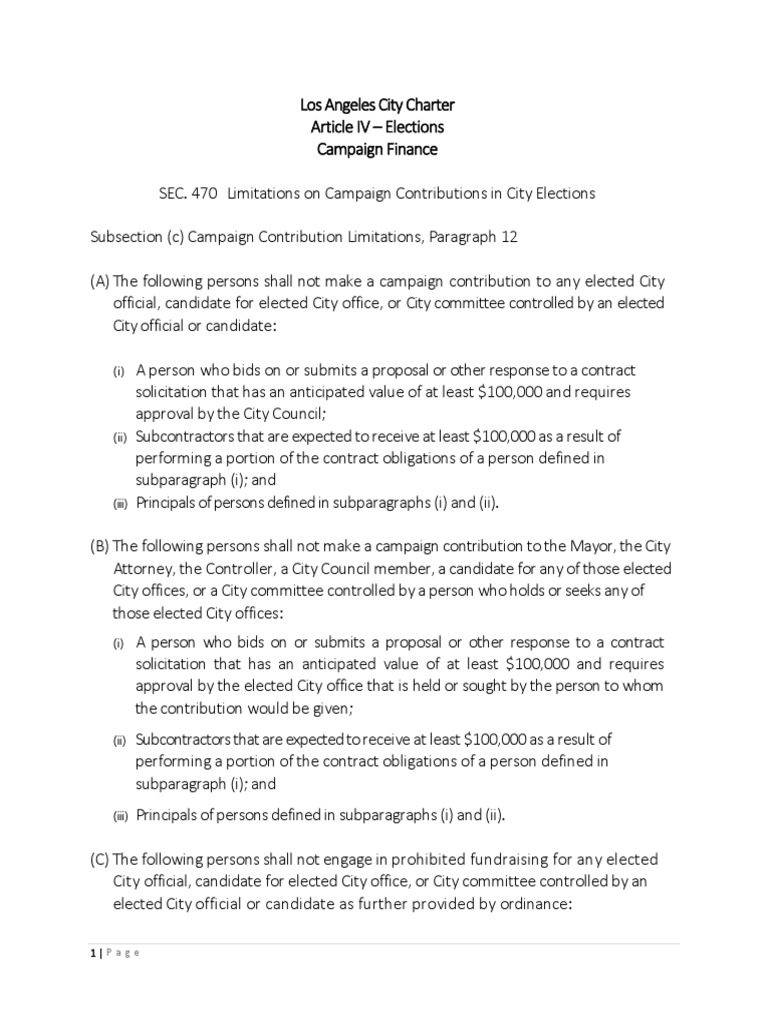 Section 470 (C) (12) Los Angeles City Charter PDF Campaign Finance